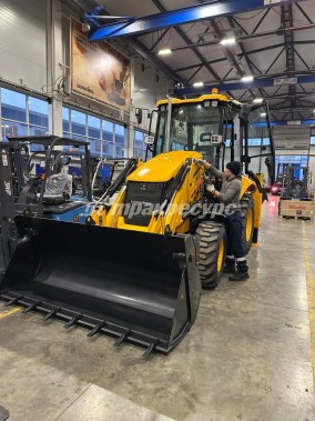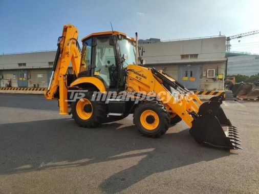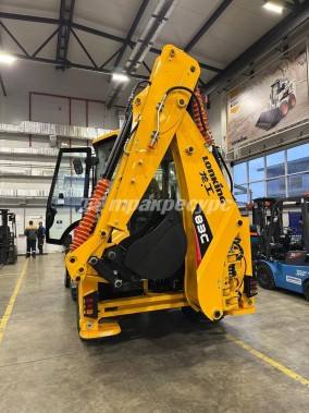 - Управление погрузчиком и экскаваторным оборудованием с помощью джойстиков, интегрированных в поворотное кресло