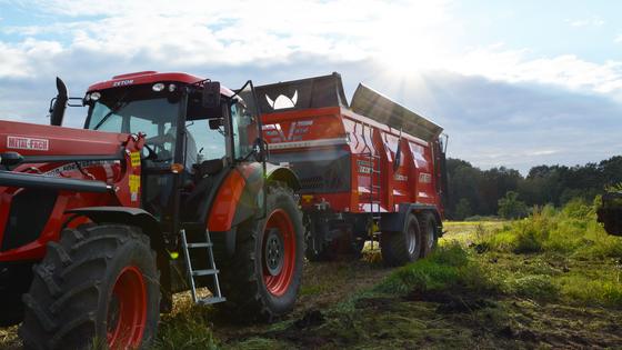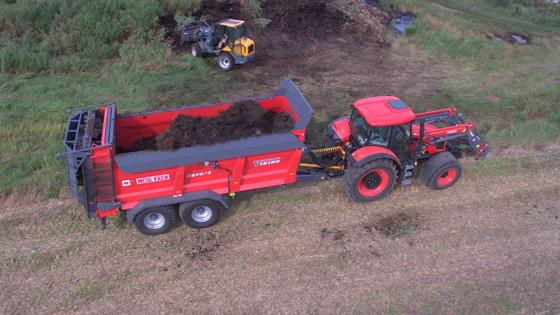 Модификация для агрохолдингов и крупных хозяйств. Позволяет внести до 18 тонн удобрения за один заход, не тратя времени на повторную загрузку. Вертикальный адаптер с двумя барабанами равномерно распределяет навоз на полосе шириной 8-12 метров.
