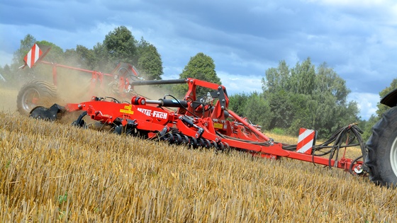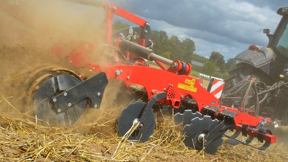 Эта уникальная борона способна быстро и надежно обрабатывать землю. Два мощных ряда дисков шириной 4,5 идеально подойдут для большинства работ. Рабочая глубина всех 36 дисков настраивается от 5 до 18 сантиметров. Это мощная борона требует 150-200 лошадиных сил, что не так много, относительно ее размеров.