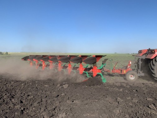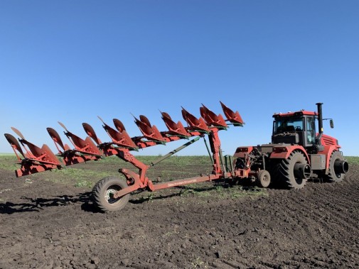 Идеальный вариант плуга для вспашки вне борозды с двойными колесами трактора.