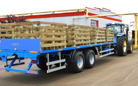 Полуприцеп-платформа универсальный ППУ-15 предназначен для транспортировки различных грузов, в т.ч. овощные контейнеры, ящики с фруктами, рулоны и тюки соломы и сена, сформированные пресс-подборщиками, емкости для жидкости в обрешетке (еврокубы), длинномерные материалы (бревна, доски, трубы, электрические опоры), контейнеры с домашней птицей, пчелиные ульи и др. по всем типам дорог и в полевых условиях