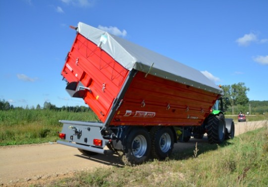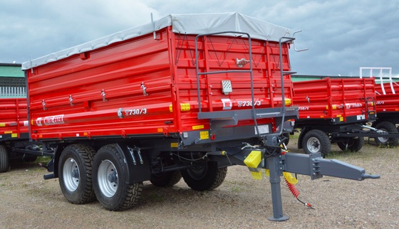 Самая мощная версия прицепа 730. Вмещает 6.6. кубометров груза общей массой до 12 тонн. При этом разгрузка займет считанные минуты благодаря самосвальной трехсторонней схеме.