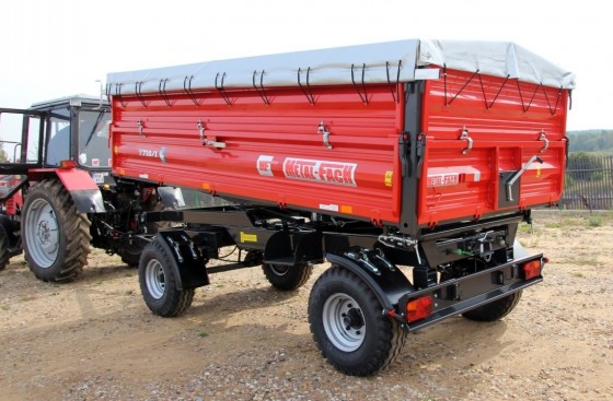 Двухосевый прицеп с трехсторонним свалом грузоподъемность 6 или 8 тонн. Характеризуется низким уровнем пола по отношению к грунту, что облегчает загрузку. Стены ящика сделано из бортовых профилей известной марки Fuhrmann. Обеспечивают они совершенную жесткость и непроницаемость конструкции. Ящик основан на системе шарниров, позволяющей на её трёхсторонний свал.
