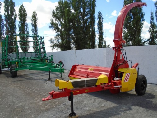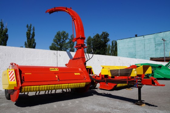 Комбайн прицепной фуражный Рось-2 скашивает зеленые сеяные и естественные травы, кукурузу и другие силосуемые культуры высотой до 1,5 м; одновременно измельчает и загружает в транспортные средства измельченный грубоструктурный зеленый корм, используемый для непосредственного скармливания скоту.