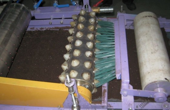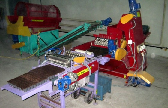 Технологическая линия состоит из 3-х модулей: сепаратор-смеситель торфа, бункер-накопитель с дозирующим устойством, установку высева семян и технологическая тележка. Каждый модуль технологической линии может работать в автономном режиме. На линии выполняются 24 технологических операции.
