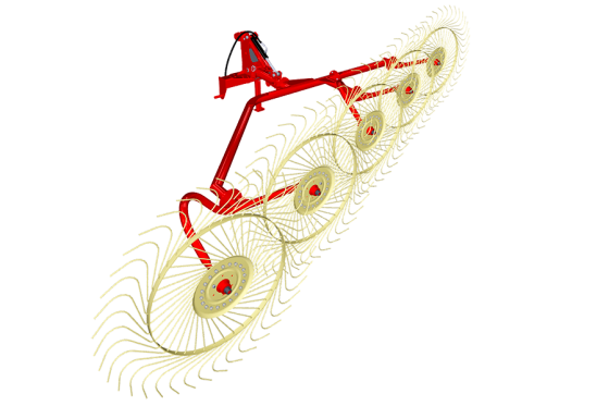 - Особая форма тандемов, на которых установлены рабочие колеса, обеспечивают лучшее прохождение сгребаемой массы (сена);