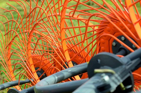 - Зубья на рабочих органах изготовлены из качественной пружинной проволоки диаметром 7 мм со специальной термообработкой, обеспечивающей длительную работоспособность. Особая форма зуба и его упругие свойства позволяют более бережно относиться к травяной массе, что особенно актуально для уборки на сено бобовых культур;