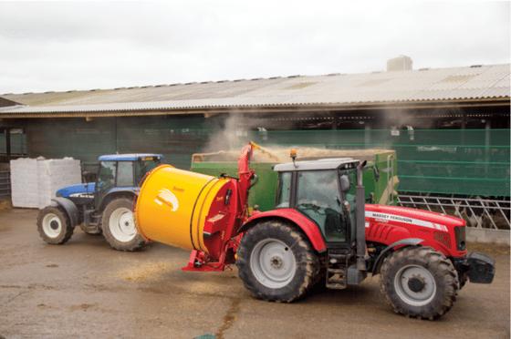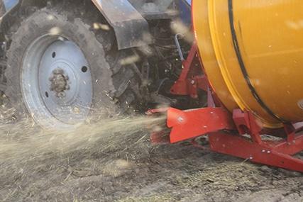 Измельченная солома разбрасывается в одну или в две стороны до 13 метров, что позволяет использовать TEAGLE Tomahawk 505M и как разбрасыватель подстилки, и как измельчитель корма.