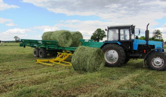 Погрузчик-транспортировщик рулонов сена ТП-10-1 предназначен для самозагрузки, транспортировки и саморазгрузки рулонов грубых кормов и льна, сформированных пресс-подборщиками.