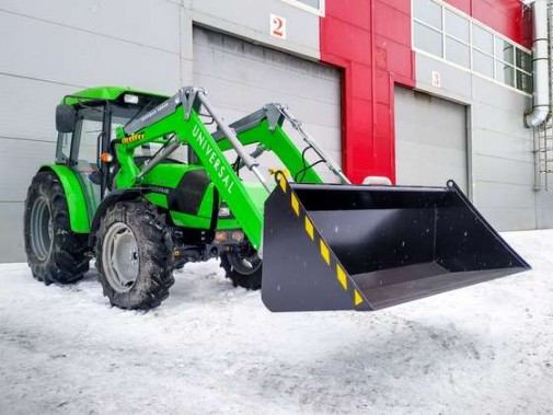 Навесной фронтальный погрузчик «Универсал DEUTZ FAHR» подходят для любых видов погрузочно-разгрузочных работ, с массой груза от 1000 кг до 1800 кг. Погрузчики этой модели используются в сельском хозяйстве, а также при проведении лесозаготовительных, коммунальных, дорожных и строительных работ. Агрегатируются с тракторами Agrolux 4.80 и Agrofarm 115G. Стрела погрузчика изготовлена из 6-ти миллиметровой высококачественной стали. Толщина стенки стрелы на уязвимых участках стрелы сечение составляет 12 мм, что повышает прочность рамы стрелы на 15%.