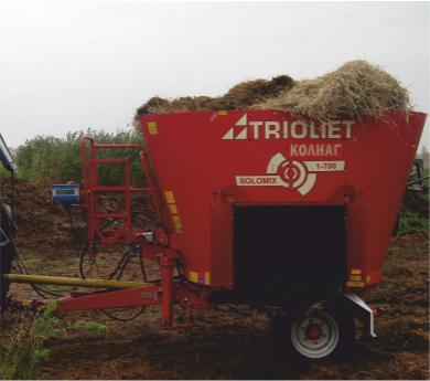 Solomix 1 7ZK эффективно смешивает различные компоненты кормовой смеси: зеленую массу, силос, сенаж, сено, солому, комбикорма, а электронная система взвешивания позволяет точно контролировать их загрузку.