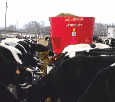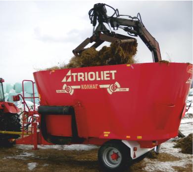 Смесители Trioliet, кроме зеленой массы, силоса и сенажаSolomix 2 12ZK успешно справляется с крупногабаритными рулонами или тюками сена и соломы. В том числе благодаря верхнему вертикальному ножу шнеков, гарантирующему быстрое вовлечение рулонов в процесс измельчения и смешивания. Смеситель способен обеспечить полноценное кормление до 700 животных общего поголовья. В стандартную поставку смесителя входит сменный комплект ножей на два шнека, электронная система взвешивания, а также специальная воронка для минеральных добавок. Кроме стандартного исполнения высотой 2,5 м, на заказ изготавливаются смесители высотой до 2,35 м.