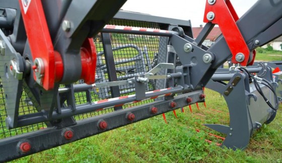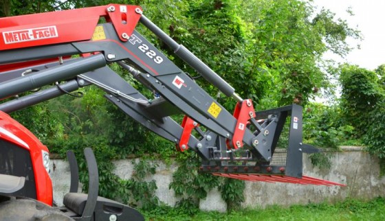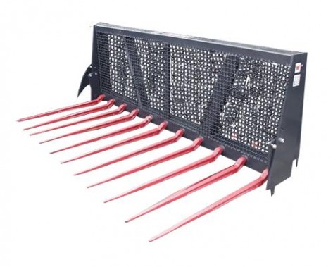 Универсальное оборудование, позволяющее перемещать солому в рулонах и навоз. Общая грузоподъемность - до 650 килограмм. 9 пальцев, перевозимый объем до 0,34 кубометров.