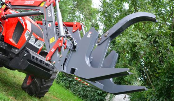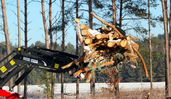 Мощный захват, позволяющий перемещать разом несколько бревен средней толщины. Удобный монтаж на еврорамку.
