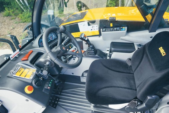 Телескопический погрузчик DIECI AGRI STAR 38.10 оснащен гидростатической трансмиссией, что позволяет работать на медленной скорости и с двигателем на полном газу. Расположение цилиндра внутри стрелы улучшает видимость и безопасность эксплуатации. Погрузчик обладает комфортабельной кабиной, которая по желанию покупателя может быть оснащена улучшенной системой кондиционирования воздуха, а так же сидениями с автоматической подвеской.