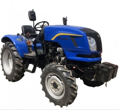 В базовой комплектации трактор Dongfeng DF-244 G2 с реверсом синего цвета оснащается экономичным, четырехтактным, 3-х цилиндровым дизельным 24-ти сильным двигателем (КМ 385BT) жидкостного охлаждения, полноприводной (4х4) механической трансмиссией (с пониженным рядом и блокировкой заднего дифференциала), счетчиком моточасов. За функционирование гидравлической системы трактора Донг Фенг ДФ-244 G2 c реверсом отвечает гидронасос, критическим давлением 14 МПа. Дополнительно в базовую комплектацию входит: двухскоростной задний вал отбора мощности (ВОМ) 540 / 1 000 об/мин., задняя 3-х точечная навеска, задний гидравлический распределитель с рычагом управления с 2-мя коннекторами (гидровыходами). Дополнительно можно до установить: фронтальные противовесы, козырек и дугу безопасности.