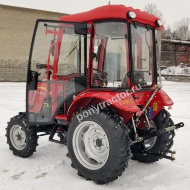 В базовой комплектации трактор Dongfeng DF-244 G2 с кабиной и с реверсом красного цвета оснащается экономичным, четырехтактным, 3-х цилиндровым дизельным 24-ти сильным двигателем (КМ 385BT) жидкостного охлаждения, полноприводной (4х4) механической трансмиссией (с пониженным рядом и блокировкой заднего дифференциала), счетчиком моточасов. За функционирование гидравлической системы трактора Донг Фенг ДФ-244 G2 с кабиной c реверсом отвечает гидронасос, критическим давлением 14 МПа. Дополнительно в базовую комплектацию входит: двухскоростной задний вал отбора мощности (ВОМ) 540 / 1 000 об/мин., задняя 3-х точечная навеска, задний гидравлический распределитель с рычагом управления с 2-мя коннекторами (гидровыходами). Дополнительно можно до установить: фронтальные противовесы.
