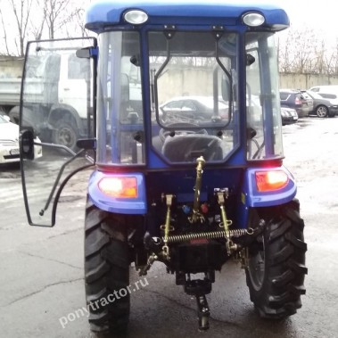 Удобство и комфорт управления трактором Dongfeng DF-244 G2 с кабиной и с реверсом обеспечивает: отопитель кабины, практически ровный пол в зоне ног оператора; боковое расположение (справа от оператора) рычага коробки передач; реверсивное движение трактора (при помощи подрулевого рычага переключения направления движения); комфортное подпружиненное регулируемое под рост и вес оператора сиденье; гидравлический усилитель рулевого управления; классическое расположение рычагов управления ВОМ и задней 3-х точечной навески; короткоходная кулиса КПП; раздельные тормозные педали; ножной и ручной акселератор, вентилятор обдува оператора.