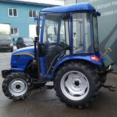 В базовой комплектации трактор Dongfeng DF-244 NEW с кабиной синего цвета в обновленном дизайне оснащается экономичным, четырехтактным, 3-х цилиндровым дизельным 24-ти сильным двигателем (КМ 385BT) водяного охлаждения, полноприводной (4х4) механической трансмиссией (с пониженным рядом и блокировкой заднего дифференциала), счетчиком моточасов. За функционирование гидравлической системы трактора Донг Фенг ДФ-244 отвечает гидронасос, критическим давлением 14 МПа. Дополнительно в базовую комплектацию входит: кабина улучшенного кругового обзора с отопителем, задний вал отбора мощности (ВОМ), задняя 3-х точечная навеска, задний гидравлический распределитель с джойстиком управления с 2-мя коннекторами (гидровыходами). Дополнительно можно до установить: фронтальные противовесы.