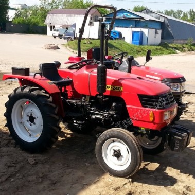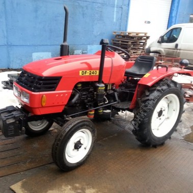 В базовой комплектации тракторDongfeng DF-240 оснащается экономичным, четырехтактным, 3-х цилиндровым дизельным 24-ти сильным двигателем (КМ 385BT) водяного охлаждения, заднеприводной (4х0) механической трансмиссией (с пониженным рядом и блокировкой заднего дифференциала). За функционирование гидравлической системы трактора Донг Фенг ДФ-240 отвечает гидронасос, критическим давлением 14 МПа. Дополнительно в базовую комплектацию входит: задний вал отбора мощности (ВОМ), задняя 3-х точечная навеска, задний гидравлический распределитель с джойстиком управления с 2-мя коннекторами (гидровыходами). Дополнительно можно до установить: фронтальные противовесы, козырек и дугу безопасности.