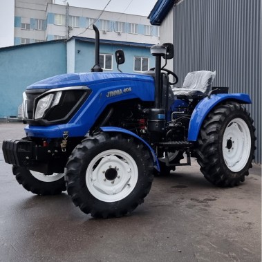В базовой комплектации трактор Jinma 404 с ходоуменьшителем в обновленном дизайне оснащается экономичным, четырехтактным 4-х цилиндровым дизельным 40-ка сильным двигателем (КМ490BT) жидкостного охлаждения, полноприводной (4х4) с ходоуменьшителем механической трансмиссией (с пониженным рядом и блокировкой заднего дифференциала), счетчиком моточасов. За функционирование гидравлической системы трактора Джинма 404 отвечает гидронасос. Дополнительно в базовую комплектацию входит: задний 2-х скоростной (540 / 1000 об/мин.) вал отбора мощности (ВОМ), задняя 3-х точечная навеска, задний гидравлический распределитель с джойстиком управления с 4-мя коннекторами (гидровыходами), фронтальные противовесы (общей массой 48 кг.). Дополнительно можно до установить: 2 пары гидровыходов с отдельным гидрораспределителем.