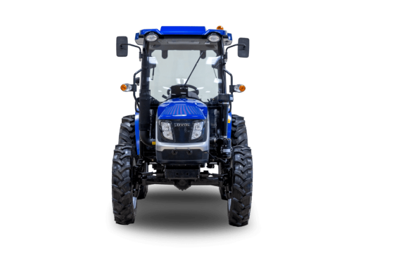 Оптимизировано место работы оператора, рациональная планировка и отделка салона, удобная панель управления, расположенная справа от оператора, удобные подвесные педали газа, сцепления и тормозов, челночное переключение передач и др., рулевой механизм можно отрегулировать по высоте. Механическая коробка передач челночно–реверсного типа с боковым управлением КПП. Есть возможность оснащения синхронизированной КПП по желанию. Увеличенный размер передних и задних колес обеспечивает отличную проходимость по бездорожью и пересеченной местности даже с навесным оборудованием. Регулируемая колея обеспечивает ему более универсальную эксплуатацию.