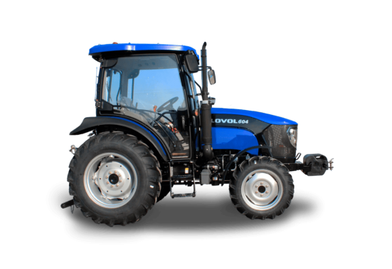 Колесный трактор Foton Lovol TB-604 с кабиной 3-го поколения оборудован дизельным четырехтактным двигателем мощностью 60 лошадиных сил, гидроусилителем руля, двухдисковым сцеплением, МКП 12+12 ручкой сбоку с синхронизатором, магнитолой, мягким сиденьем, гидовыходами, вспомогательным баком.